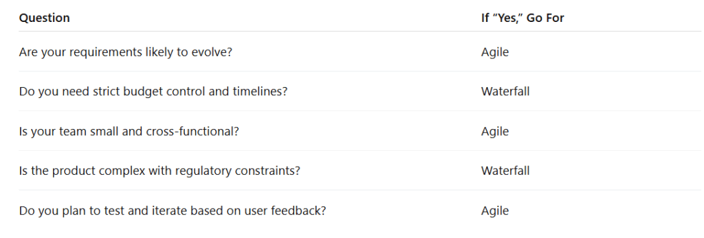 If your startup is executing a contracted project with predefined deliverables (like government software or compliance-driven tools), Waterfall provides clarity and accountability.